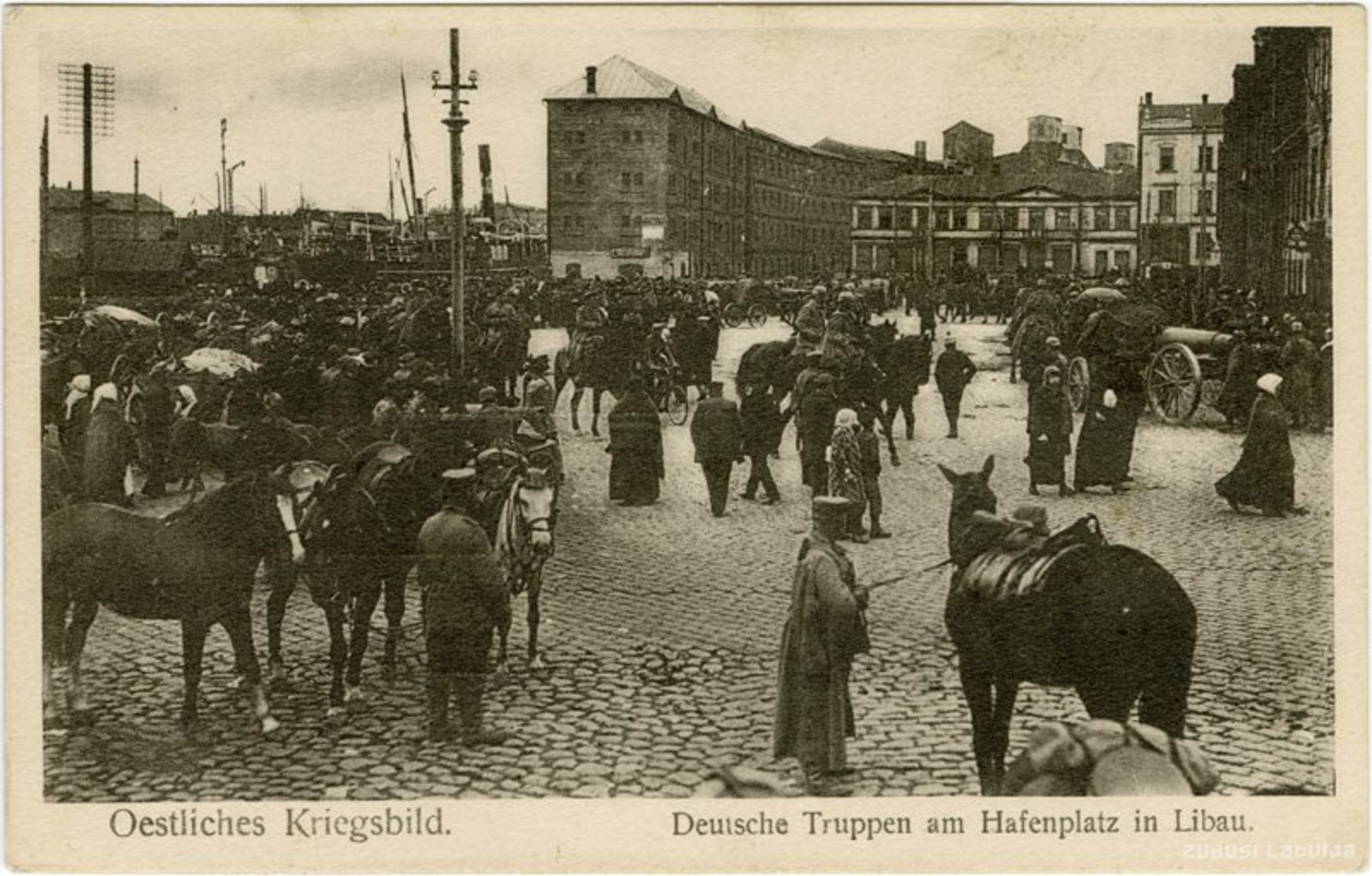 Oestliches Kriegsbild. Deutsche Truppen am Hafenplatz in Libau
