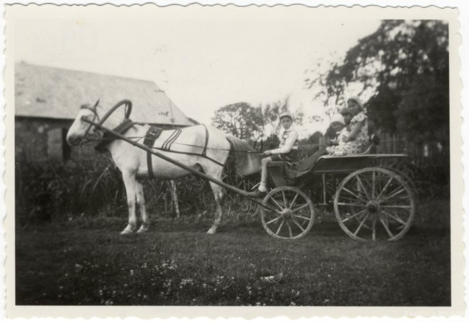 Krapes pagasts. Bērni zirga pajūgā lauku sētā Viskaļos