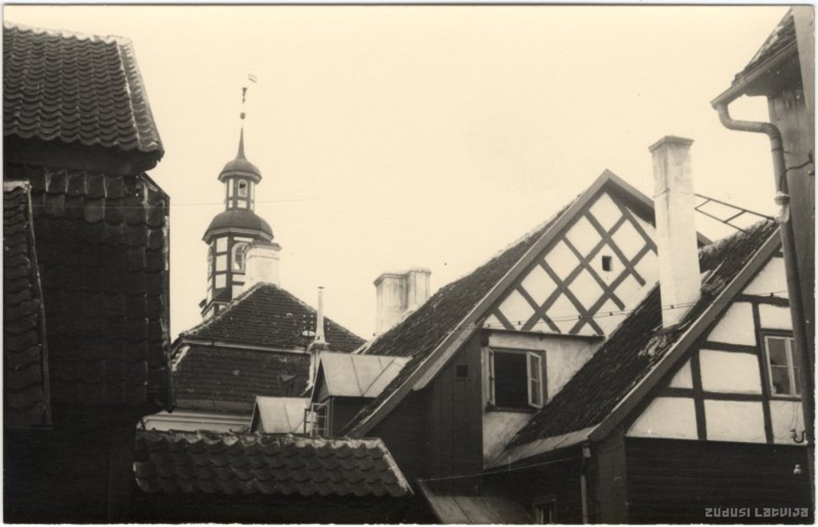 Jelgava. Rātsnama tornis no mājas pagalama