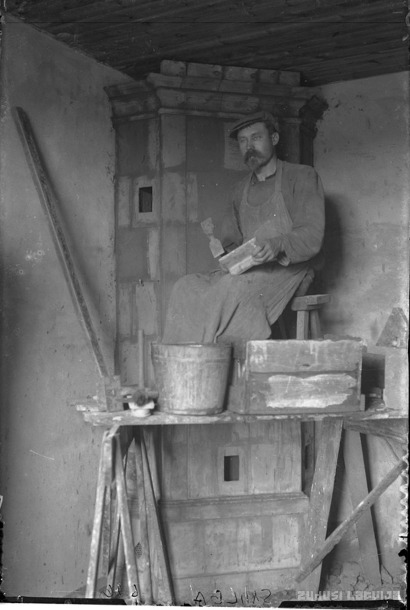 Vīrietis mūrē krāsni