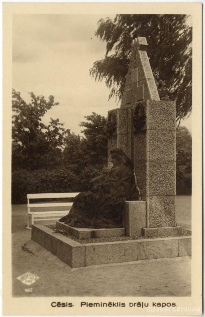 Brāļu kapu piemineklis Cēsšis, Lejas kapos. 1927. gada 4. septembrī pieminekli atklāja Valsts prezidents Gustavs Zemgals. Pieminekļa autori: tēlnieks A. Julla un akmeņkalis A. Sproģis. Pieminekļa priekšpusē ir sarkana granīta plāksne ar tekstu: "Mums dzīvība - dzimtenei veltījums, miers Latvijas klēpī - dārgs ieguvums. Latvijas neatkarības cīnītājiem 19150-1920". Pēc Otrā pasaules kara pazuda reljefā darinātas karavīra un aizsarga bronzas figūras un viens no bronzas vainagiem. 1991. gadā pieminekli atjaunoja, taču nedaudz vēlāk atkal tika nozagta viena figūra. Otra figūra tika noņemta un tagad piemineklim nav arī Mātes - Latvijas tēla, kuras klēpī atdusas kritušo dēlu galvas