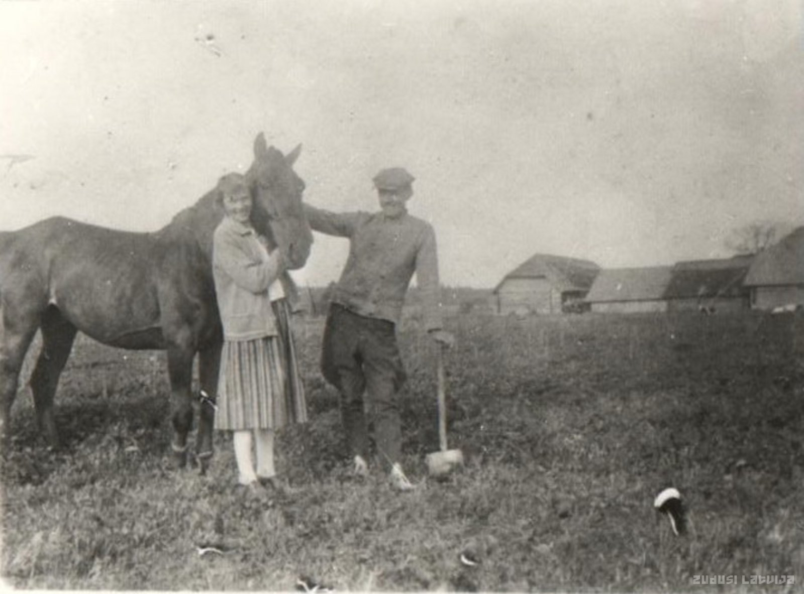Pēc Zemes reformas Vadakstes pagastā tika izveidotas jaunsaimniecības, tostarp Krūmaļus saņēma Rozenvalds.Fotogrāfijā jaunsaimnieki ar zirgu savā zemē.