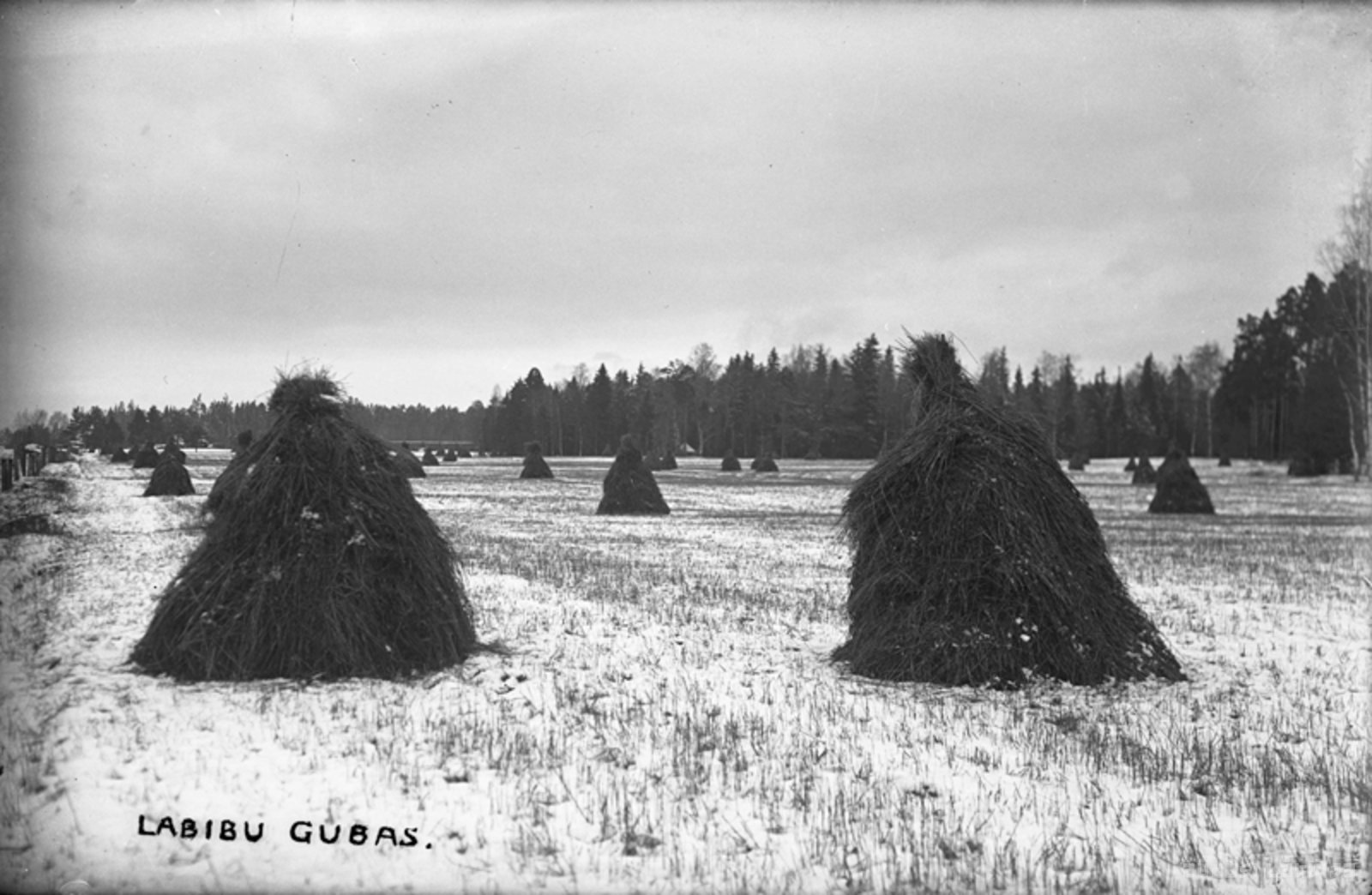 Labības gubiņas tīrumā ziemas laikā