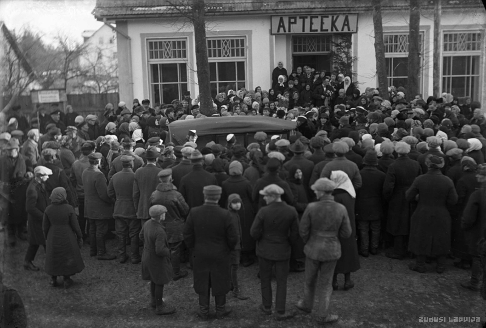 Strenči. Bēres. Izvadīšana no aptiekas mājas