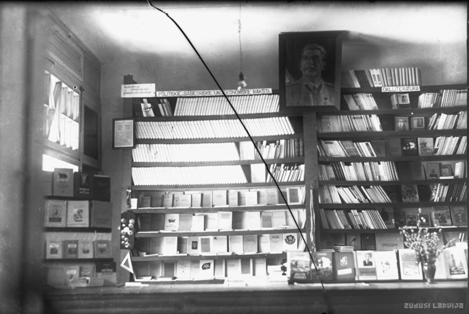 Strenči. Grāmatu veikals, pie sienas Staļina portrets