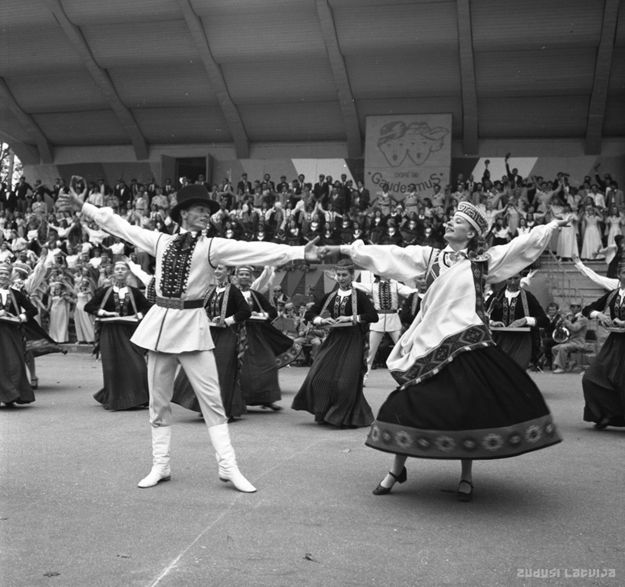 Pirmie Baltijas valstu studentu dziesmu un deju svētki "Gaudeamus'' notika Igaunijas studentu pilsētā Tartu 1956.gadā. Turpmāk ik pēc pieciem gadiem svētki norisinājas kādā no Baltijas valstu pilsētām pulcējot kopā Latvijas, Igaunijas, Lietuvas augstskolu studentu kora dziedātāju, dejotāju un pūtēju orķestra muzikantu tūkstošus. Pirms došanās uz 1986.gada Baltijas studentu dziesmu un deju svēkiem Latvijas augstskolu pašdarbnieki tikās Ogres estrādē