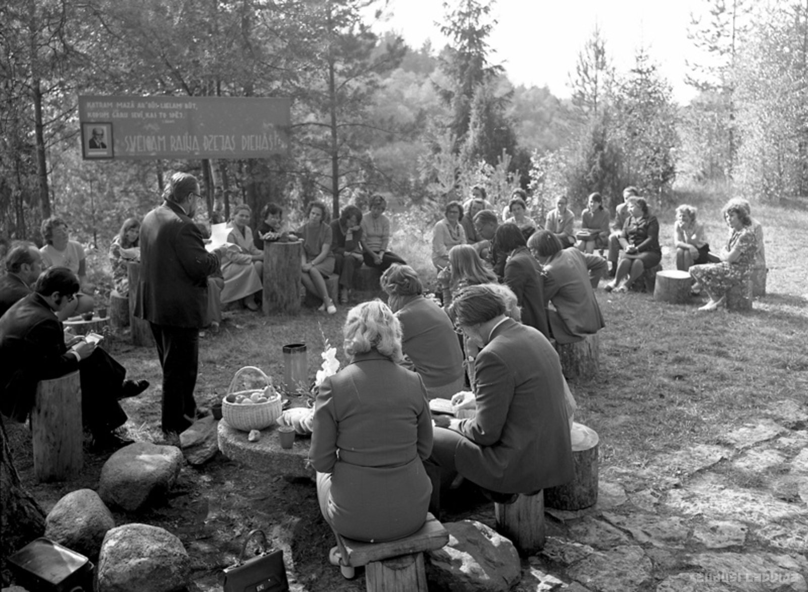 Rakstnieku Savienība kopš Raiņa 100-gades svinībām 1965.gadā rīko ikgadējās Dzejas dienas. Raiņa dzejas dienas ir viena no ilglaicīgākajām kultūras dzīves tradīcijām Latvijā. Dzejas dienu atklāšanas pasākums parasti notiek 11.septembrī pie Raiņa pieminekļa. 20.gadsimta septiņdesmitajos, astoņdesmitajos gados vairākas dzejnieku grupas organizēti devās uz dažādiem Latvijas novadiem, lai tiktos ar darba kolektīviem, skolniekiem, uzstātos dzejas pasākumos kultūras namos. Attēlā: Dzejnieku grupa meža ielokā tiekas ar Strenču Mežrūpniecības saimniecības darbiniekiem