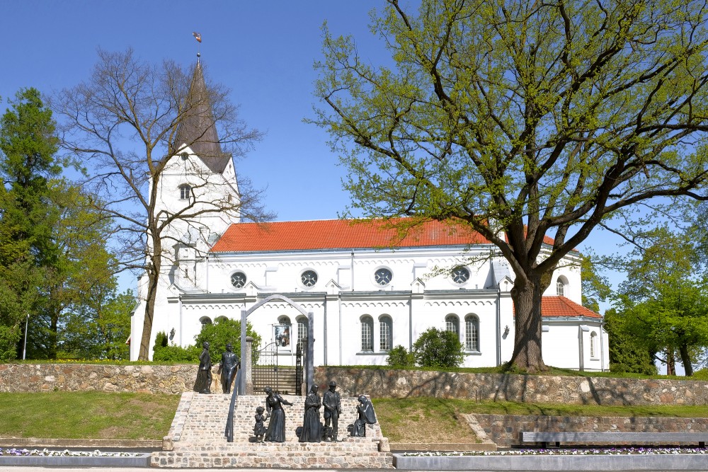 Saldus Sv. Jāņa luterāņu baznīca un bronzas skulptūras